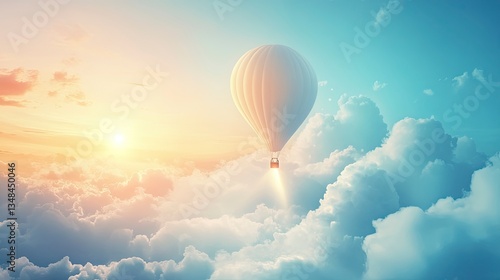 Naklejka premium Hot Air Balloon Floating Above Clouds During Sunrise Journey Image