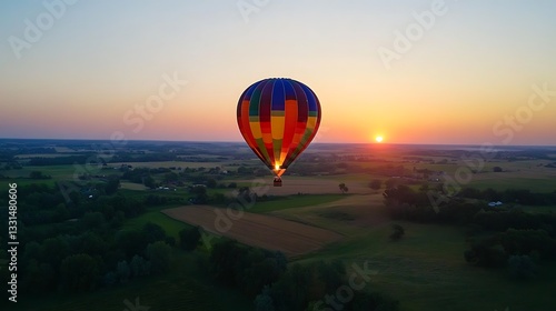 © Rufat, Obraz premium Hot Air Balloon Floating Above the Countryside During Sunset