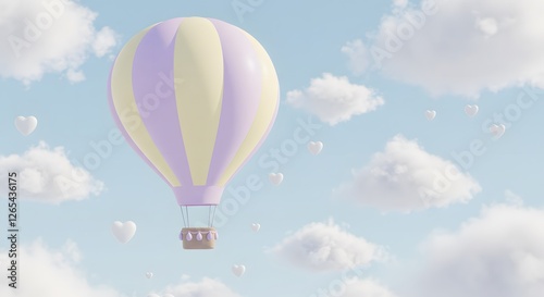 Fototapeta premium Hot Air Balloon Floating Among Heart Clouds in a Pastel Sky