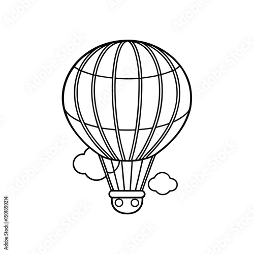 Fototapeta premium Hot Air Balloon Floating in the Sky Kids Coloring Page Vector