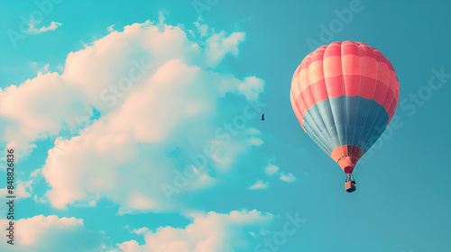 Fototapeta premium Hot air balloon flying above clouds. Adventure and travel,Colorful hot air...