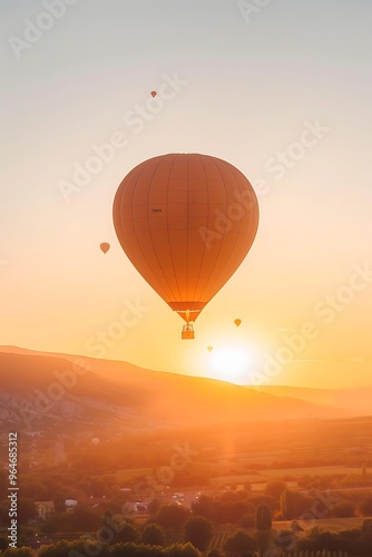 © Engineer Jahid, Naklejka premium Hot air balloon flying high in the sky at sunset.