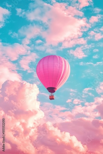 Fototapeta premium Hot Air Balloon Flying Through Cloudy Sky