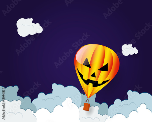 Fototapeta premium hot air balloon halloween horror face flying over cloud