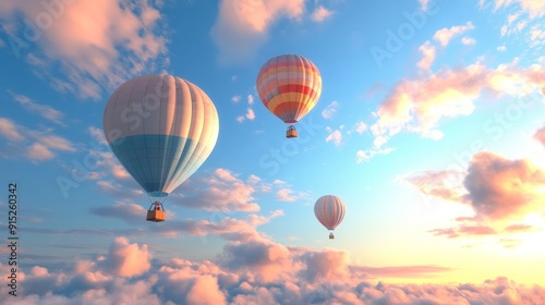 © Lumos Maxima, Fototapeta premium Hot air balloon heading towards the clouds in the vanilla sky