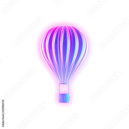 © Tark, Fototapeta premium Hot air balloon holographic 3D icon. neon symbol vector illustration isolated on white background. Generative AI