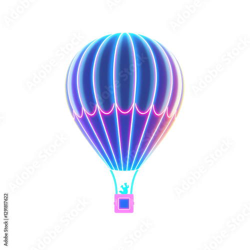 © Tark, Fototapeta premium Hot air balloon holographic 3D icon. neon symbol vector illustration isolated on white background. Generative AI
