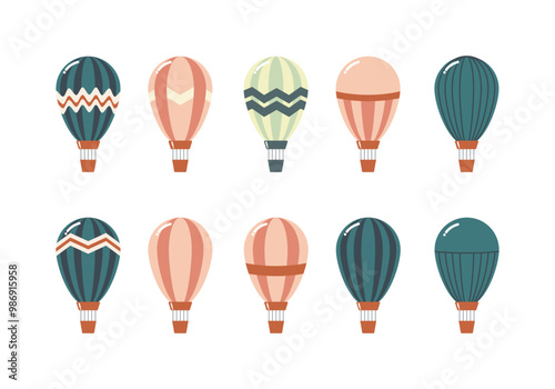 Fototapeta premium Hot air balloon icon Flat style. collection of isolated cartoon illustrations