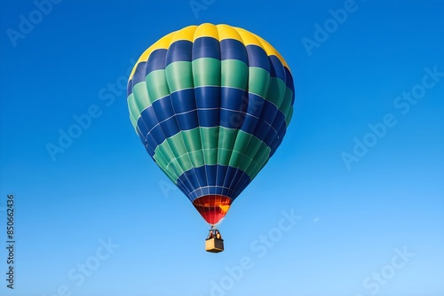 Fototapeta premium Hot Air Balloon in Flight at Blue Sky. Perfect for Adventure and Travel Concepts