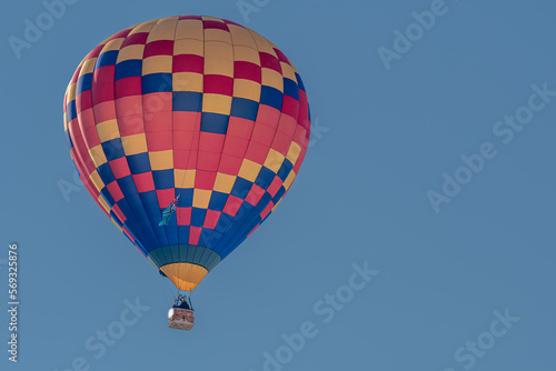 © Heying HUA, Naklejka premium Hot Air Balloon in flight. Hot air ballooning flying in the sky in Switzerland.
