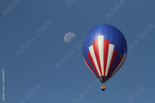 © Michael Rolands, Naklejka premium Hot air balloon in flight with moon in the background