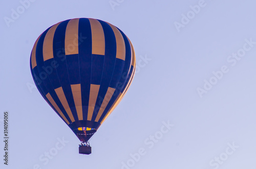 Naklejka premium hot air balloon is flying at sunrise. romantic balloon flights