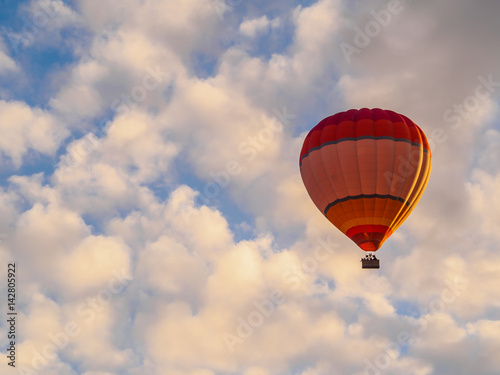 © patana, Naklejka premium hot air balloon on blue sky with cloud background