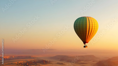 Naklejka premium Hot Air Balloon Over Desert Sunrise Landscape