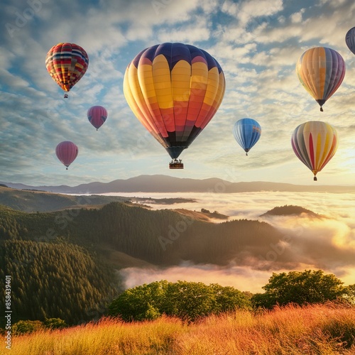© Nisar Studio, Obraz premium hot air balloon over region country