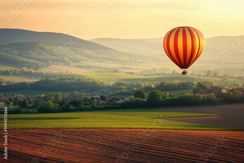 © Fakrul, Obraz premium Hot Air Balloon Soaring Over Rolling Hills