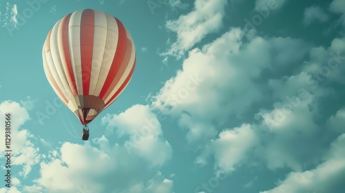 Fototapeta premium Hot Air Balloon Soaring Through a Cloudy Sky