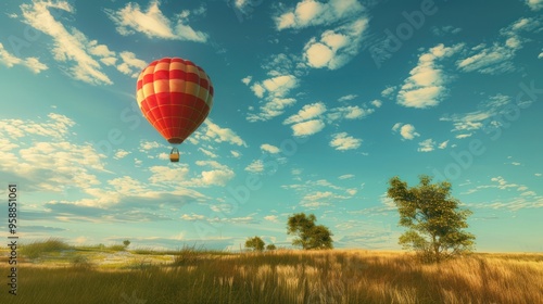 Fototapeta premium Hot Air Balloon Soaring Through a Sunny Sky