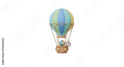 © ryan, Fototapeta premium Hot air balloon with globe and compass adventure travel icon