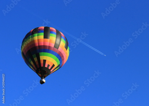 © monique, Naklejka premium Hot Air Balloon with Plane flying Over
