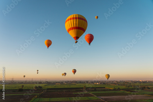 Obraz premium Hot air Balloons above Luxor city in a morning sunrise, Egypt