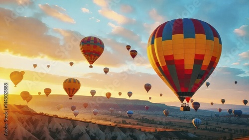 © Cedric, Fototapeta premium Hot air balloons float over Cappadocia at sunrise