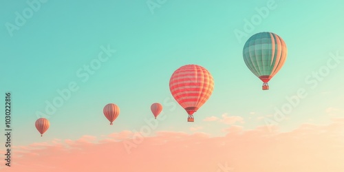 © Ali, Naklejka premium Hot air balloons flying against a blue sky.