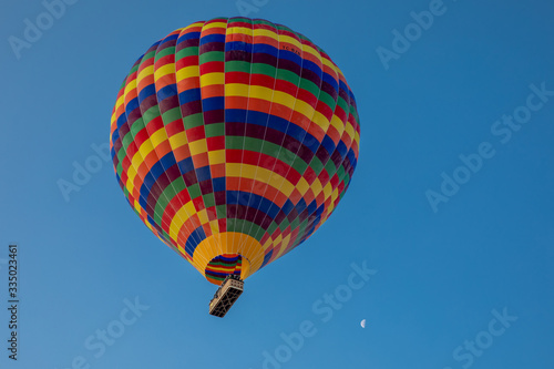 Naklejka premium Hot Air balloons flying over amazing rock forms in Cappadocia