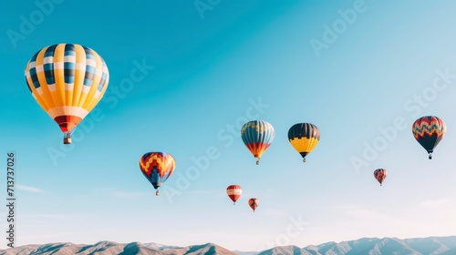 Fototapeta premium Hot air balloons flying over mountain at sunrise
