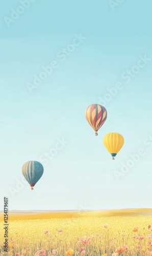 Obraz premium Hot air balloons gracefully glide over a colorful field during a clear day...