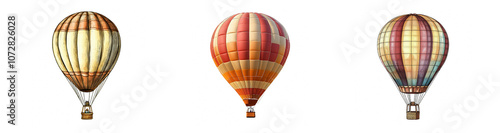 Fototapeta premium Hot Air Balloons in Different Patterns Floating in a Clear Sky, Capturing the Joy of Adventure and Freedom in the Open Air