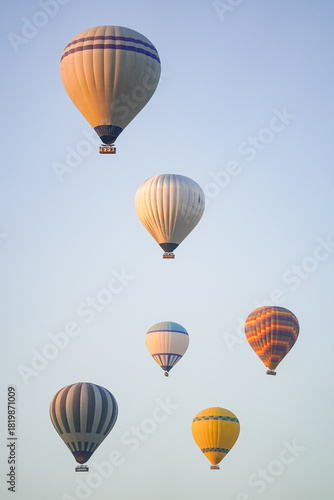Obraz premium Hot Air Balloons over Cappadocia Valleys in Nevsehir, Turkiye