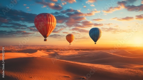 © IMAGINIAC, Obraz premium Hot Air Balloons Soaring Over a Desert Landscape at Sunset