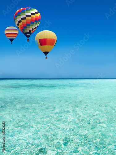 © stockyimages, Fototapeta premium Hot air balloons travel over the sea