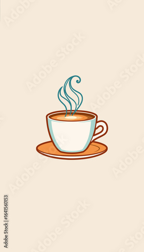 © Aleks, Obraz premium Hot beverage in white cup with steam on saucer and light background