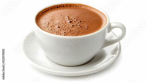 Fototapeta premium Hot chocolate, cup, saucer, drink, white background, breakfast