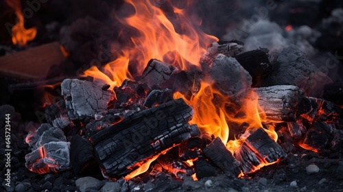 © Evandro, Fototapeta premium Hot Coals and Embers. Fire in the fireplace. Environment pollution.