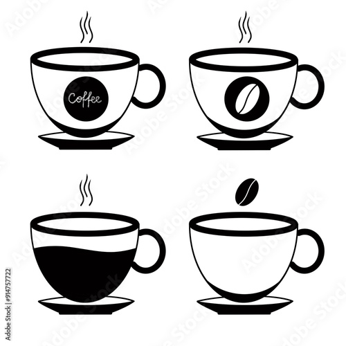 Obraz premium Hot coffee cup illustration, cut out. Cup coffe with steam and bean isolated...