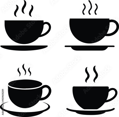 Obraz premium Hot Coffee Cups Steam Silhouette Image Set