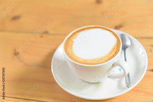 Fototapeta premium hot coffee on table / hot cappuccino with nice pattern milk foam