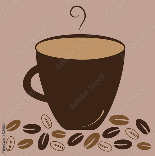 © keeweegirl, Obraz premium Hot Coffee with stem and coffee beans