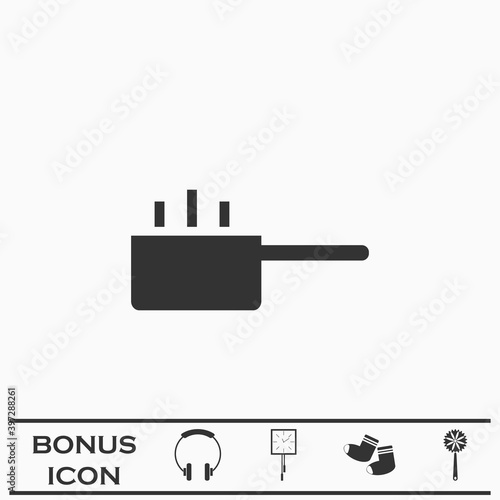 Fototapeta premium Hot cooking pot icon flat.