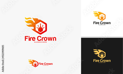 © Lucky Luck, Fototapeta premium Hot Crown logo designs concept, Fire Crown logo template vector, Crown logo designs