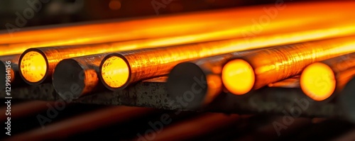 Naklejka premium Hot Metal Rods in Industrial Setting Steel Manufacturing Glowing Red Heat...