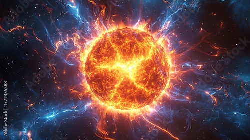 Fototapeta premium Hot plasma ball radiating extreme solar heat high resolution picture