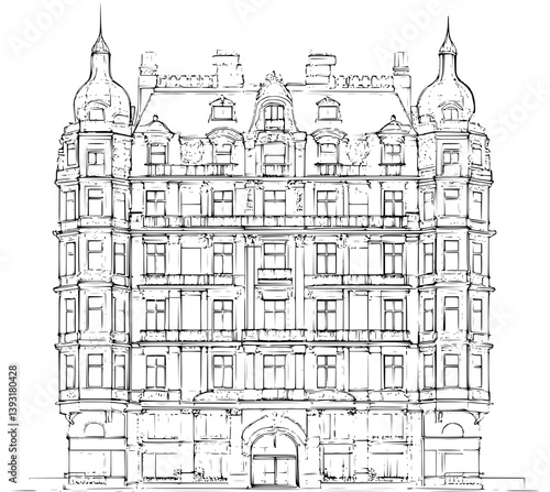 © designknowledge, Obraz premium Hotel coloring book vector design, Hotel vector image