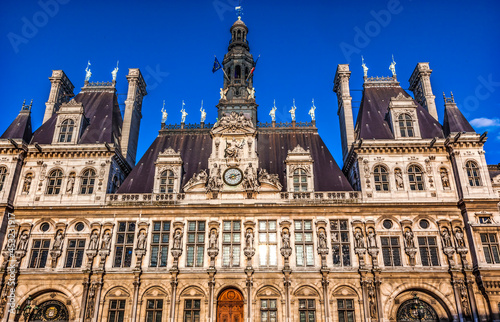 © Bill Perry, Fototapeta premium Hotel de Ville Flags City Hall Paris France
