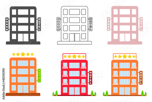 Obraz premium Hotel icon, set of multicolored hotel icons isolated on white background. Vector illustration.