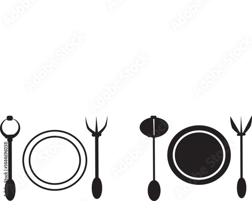 Naklejka premium hotel, quality, service, signs, stroke, simple, lunch, liner, element, fork, illustration, knife, plate, line, icon, hostel, eatery, design, symbol, vector, dinner, flat, food