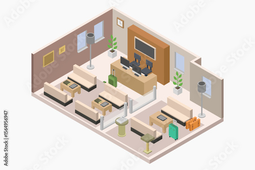 © mark1987, Obraz premium Hotel Reception Hall Interior Isometric